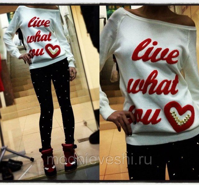 Так же, как всегда, в тренде остаются кофты с разными надписями и росписями. Здесь так же как и с принтами, может быть расписана вся кофта или же только небольшая ее часть. Но как бы это не выглядело, вы в любом случаи будете модными и стильными.