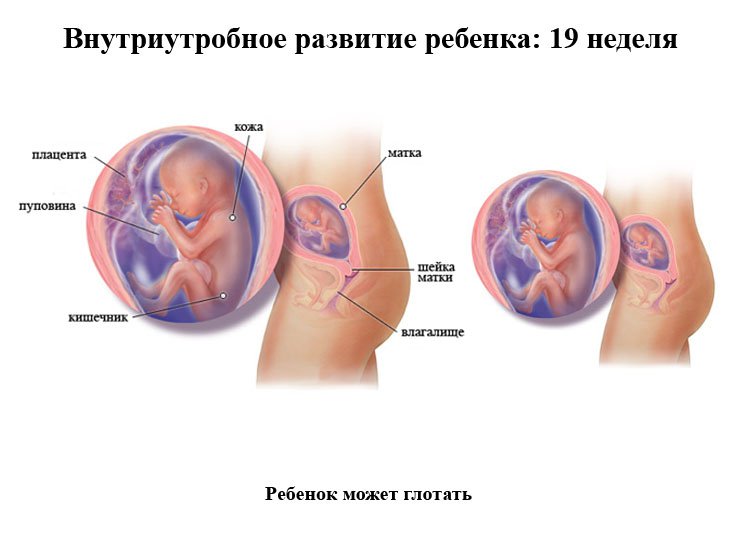 19 неделя беременности является большим скачком впечатлений для малыша. Вес плода составляет 250 грамм, а длина 22 сантиметра. Если в животике девочка, яичники в этот период уже содержат максимальное количество примитивных яйцеклеток.