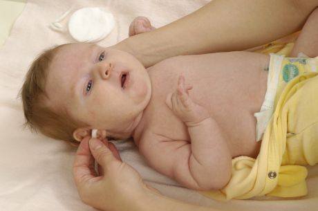 Так же необходимо осмотреть ушки ребенка. Чистить их нужно два-три раза в неделю. Помните, что ватные палочки можно использовать только тогда, когда малышу исполнился месяц. До этого ушные раковины можно чистить ватными трундочками, до этого смоченными в воде.