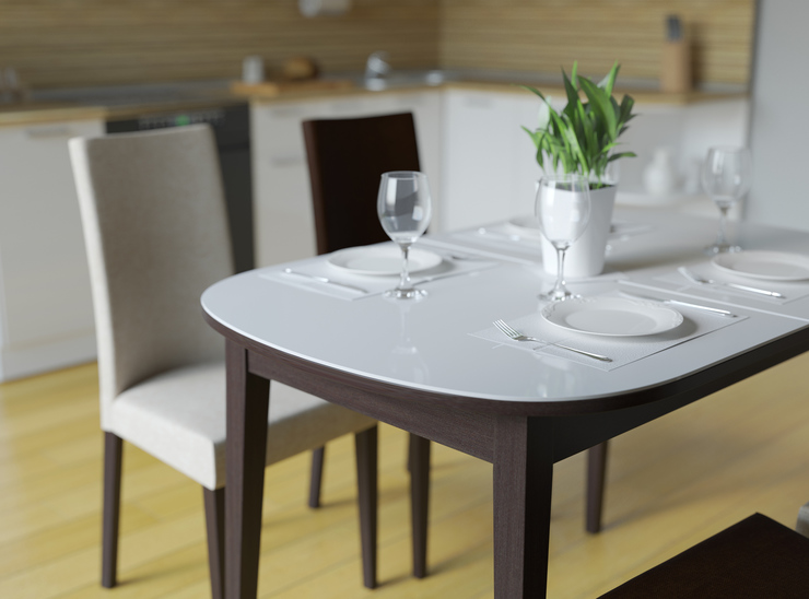 • Размеры стола. Здесь всё очевидно – если семья большая, то и стол необходим большой, а для одного-двух человек подойдёт миниатюрный столик. Однако довольно часто можно столкнуться с такой проблемой, как малая площадь кухни. Выходом в этом случае может служить раскладной стол-трансформер. Также при выборе стола стоит учитывать и его высоту. Здесь всё зависит от стиля кухни – кому-то необходим высокий барный стол, кому-то - низкий в японском стиле, а кого-то устроит стандартный вариант. Также можно выбрать стол с регулируемой высотой, что является более приемлемым вариантом.