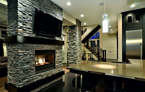 Этот материал подходит для различных помещений в доме. Он может использоваться для облицовки стен, полов, каминов, а также для создания акцентных элементов, таких как столешницы или барные стойки.