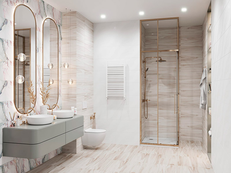 • Безопасность. Случайно разбитое керамическое покрытие может разлететься на острые осколки, вызвав порезы, глубокие царапины и другие травмы. Кафель для ванной должен быть не только красивым и практичным, но и максимально прочным, долговечным, стойким к образованию сколов и трещин от ударов душевой лейкой.