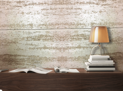 • Рваный узор – необычный настенный декор в стиле Травертин, использующий неординарный подход к нанесению, заключающийся в случайном чередовании слоев разных тонов.