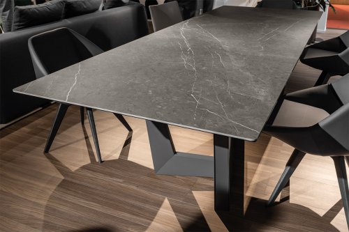 Прочность. Керамическая столешница очень прочная и устойчива к царапинам, температурным изменениям и влаге. Она не сколается и не тускнеет со временем, что делает ее долговечным решением для обеденного стола.