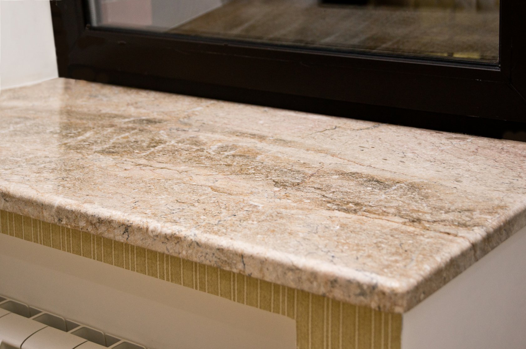 Подоконники из натурального камня отличаются высокой прочностью и долговечностью. Они не поддаются механическим повреждениям, не боятся воздействий влаги и температуры, что делает их идеальным выбором для использования в отопительных помещениях. К тому же камень не выцветает под воздействием солнца, сохраняя свой первоначальный вид на протяжении многих лет.