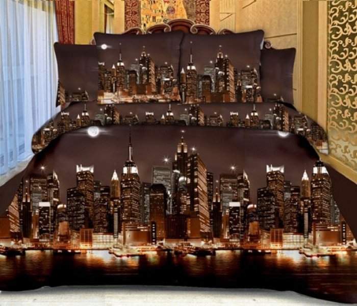 Реалистическое объемное изображение ночного города, животных, цветочных мотивов или экзотических пейзажей создадут необычную атмосферу в спальне.