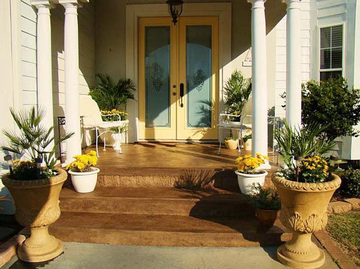 Для гармоничного вида крыльца важно правильно выбрать дверь. Жители городов, сталкиваясь с вопросом о том, как выбрать дверь в квартиру, отдают предпочтение прочности в ущерб эстетике. В загородном доме этого хочется избежать, ведь это фасад вашего дома, доступный для обозрения. К счастью, выбор прочных и красивых дверей достаточно велик, чтобы подобрать достойный вариант к любому крыльцу. Не рекомендуется ставить деревянные двери на внешний вход, как уже отмечалось, дерево подвержено сильному влиянию погодных условий, поэтому ваша деревянная дверь может размокнуть или усохнуть, что естественно скажется на её функциональности.
