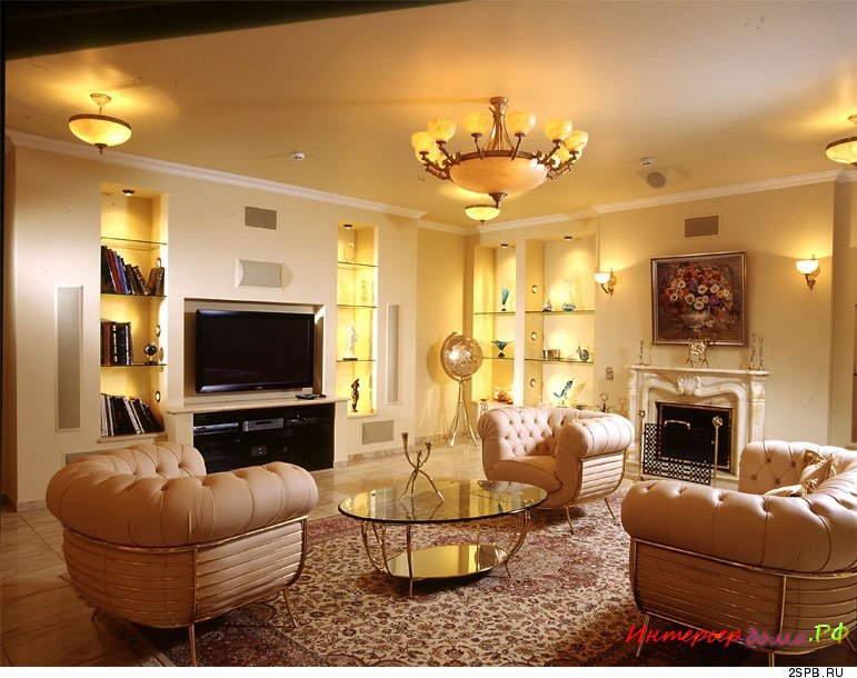 Интерьер в классическом стиле завораживает своей благородной цветовой гаммой, спокойные теплые тона: оливковый, бежевый, коричневый, песочный, помогают расслабиться и заполняют дом теплотой. Можно подобрать обои с мягкими тонами, деревянный паркетный пол и камин, строгая элегантная мебель из натурального дерева, картины и шторы, зеркала, ковры – всё это атрибуты классического стиля.