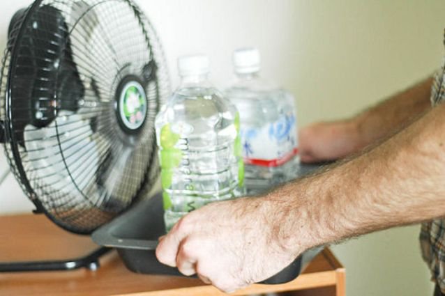 - Приобретите вентилятор. А с помощью дополнительных подручных средств можно будет еще и сделать так называемый самодельный кондиционер. Для этого перед вентилятором нужно поместить емкость с водой, которая будет способствовать скорейшему охлаждению помещения.