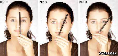 Есть методика, по которой можно определить идеальную форму бровей именно для вас. Возьмите обычный ровный карандаш. Приложите его от кончика носика к внутренней части глаз, будет видна крайняя часть бровей, это и считается идеалом, волосики которые находятся за пределами, стоит выщипать. Следующую визуальную линию сделайте так, что бы карандаш снова был у кончика носа и проходил к внешней стороне глаза, его уголку, это будет конец вашей брови, остальные волосики нужно удалить. Если хотите сделать изгиб, не хотите прямую бровь или круглую, приложите карандаш к кончику носика и проведите его якобы по радужке вашего глаза, а именно по зрачку, и где окажется кончик карандаша, в том месте и нужно делать изгиб. Помните, что от начала бровь должна быть максимально толстой, а к концу она должна становится постепенно тоньше.