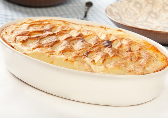 Курага вымачивается в молоке. Творог, банан и корица взбиваются блендером и перемешиваются с курагой и молоком. Смесь вкладывается в форму и выстаивает два часа в холодильнике.