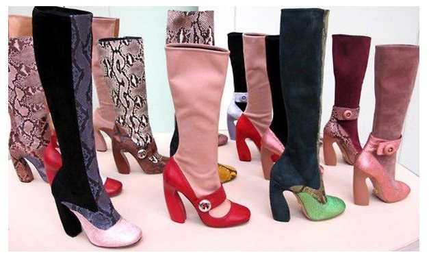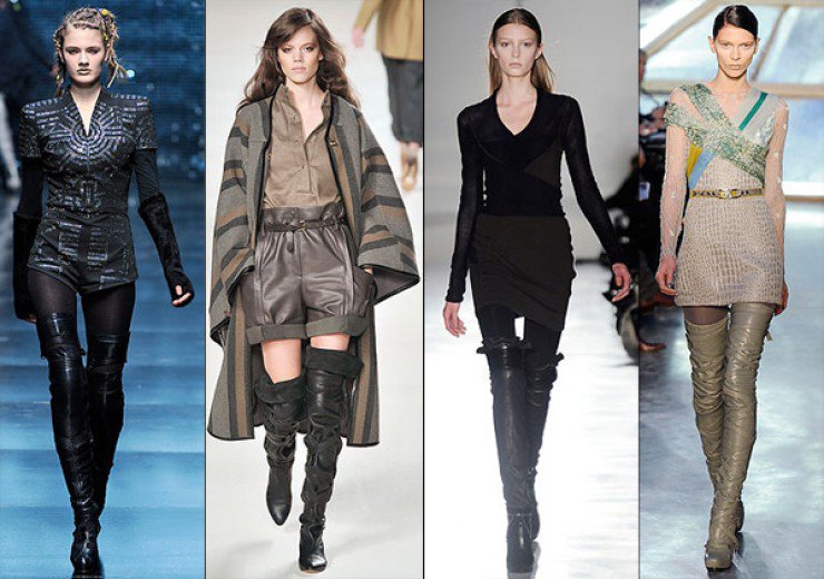 На показах мы часто встречаем сапожки с закругленным носком, голенище которых доходят до колен. Это классическая обувь, которая уже несколько сезонов подряд держит свое первенство среди дизайнеров и модниц.