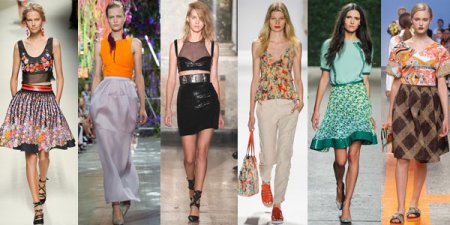 С такой укороченной блузкой изящным девушкам можно посоветовать использовать мини- юбки и балетки, желательно телесного или яркого цвета, в леопардовых принтах, которые этим летом снова в моде.