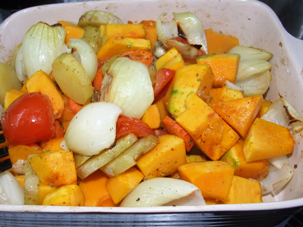 После того, как пройдет час и овощи замаринуются, их нужно выложить на противень вместе с маринадом, противень застелить пергаментной бумагой (если Вы на природе, то на фольгу, а фольгу на решетку). Запекать около тридцати минут в разогретой до 190 градусов духовке. Время выпекания зависит от того, в каком виде овощи вы больше предпочитаете.