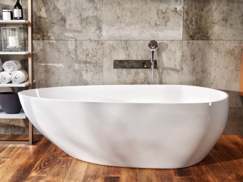 свободностоящие акриловые ванны. Литые мраморные ванны имеют солидный перечень плюсов: