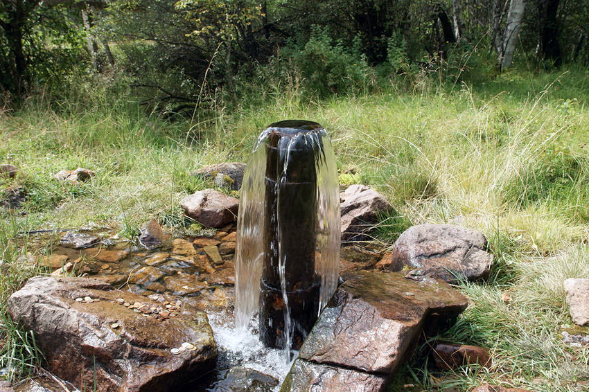Артезианская скважина: Скважина пробуривается до водоносного горизонта. Когда скважина достигает этого слоя, вода под давлением самопроизвольно начинает подниматься вверх, иногда до такой степени, что она может выходить на поверхность без помощи насоса.