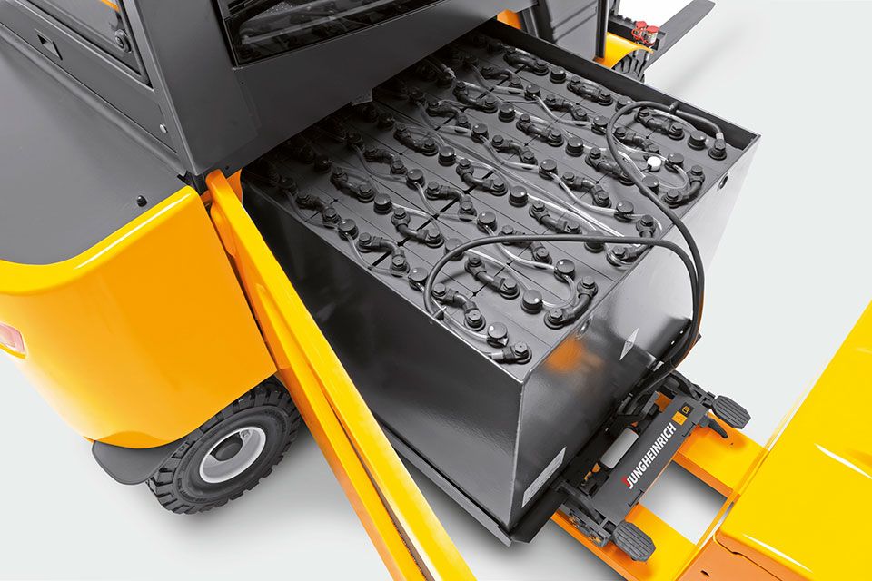 Тяговые аккумуляторы обладают высокой емкостью, что позволяет погрузчикам работать в течение длительного времени без необходимости частой замены батарей. Это особенно важно в условиях интенсивной работы склада, где погрузчики должны быть в постоянном движении.
