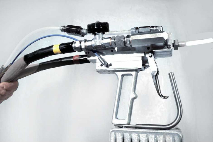 При работе с полимочевиной понадобится оборудование с показателями от 180 бар или 18 МПа. За счет высокой скорости подачи ингредиентов осуществляется быстрое перемешивание смеси.