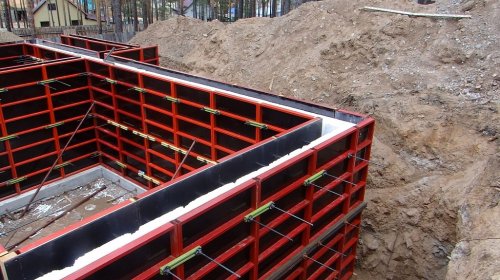 • Опалубка из пенопласта собирается очень легко и быстро – как детский конструктор, после чего внутрь нее заливается бетонный раствор. Впечатляющее и современное инженерное решение, к тому же, вспененный полистирол – эффективный теплоизолятор. Как и в случае с вариантом из древесных плит, к недостаткам можно отнести потребность в отделке.