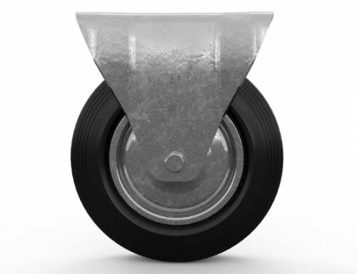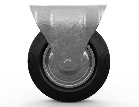 Шинка колеса выполнена из литой чёрной резины, которая обеспечивает амортизацию и комфортное передвижение техники даже по неровной поверхности. Этот материал устойчив к порезам и другим механическим повреждениям, что делает его идеальным для использования в условиях высокой нагрузки. Благодаря этому промышленные колёса обеспечивают: