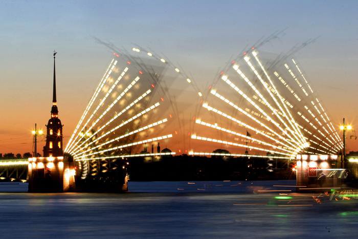 Красивое зрелище - момент, когда разводят мосты над Невой (в час ночи) и прохождения караванов судов. Лучше прийти пораньше, чтобы занять место у парапета, поскольку любителей поглазеть будет достаточно.