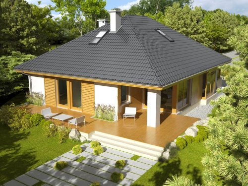 Дополнительная защита: Вальмовая крыша обеспечивает дополнительную защиту от ветра и осадков благодаря своей форме, что делает ее идеальным выбором для районов с плохими погодными условиями.