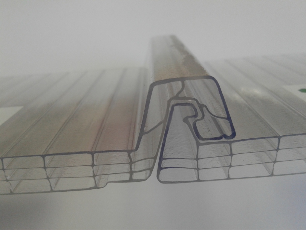 Прочность и надежность: Замковые элементы обеспечивают надежное соединение листов поликарбоната, что делает конструкции устойчивыми к нагрузкам и воздействию внешних факторов.