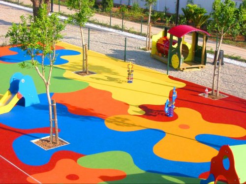 • Этот материал играет роль декоративного и защитного покрытия на площадках, которые предназначены для прогулок с детьми. Однако его нередко используют для обустройства дорожек в саду, организации пандусов и других мест.