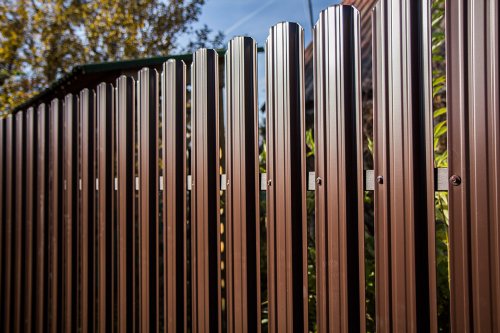 Кроме того, забор из металлического штакетника является надежной защитой от посягательств посторонних лиц. Его сложно перелезть или переломить, что обеспечивает безопасность и конфиденциальность находящегося за ограждением участка.