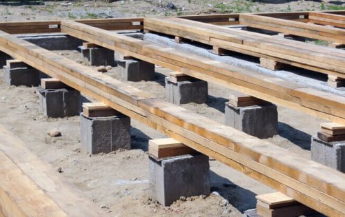 Далее производится закопка свай. Для этого в землю забивают металлические или бетонные сваи определенной длины и диаметра. Сваи располагаются на равном расстоянии друг от друга, в зависимости от нагрузки, которую должен выдерживать фундамент. Располагать их можно как в один, так и в несколько рядов.